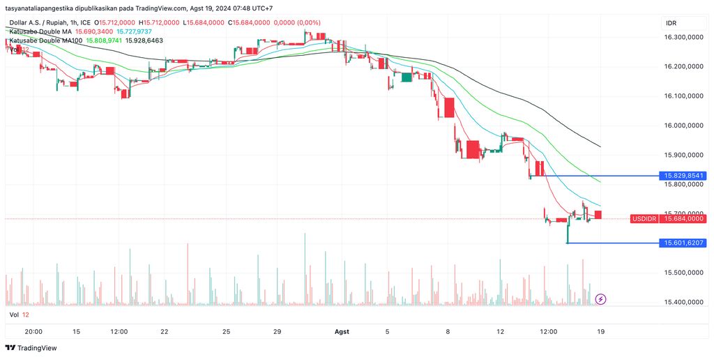 Sementara itu, untuk support terdekat atau potensi penguatan lanjutan bisa menguji ke Rp15.600/US$. Ini diambil dari low candle intraday yang sempat tersentuh pada 15 Agustus 2024.